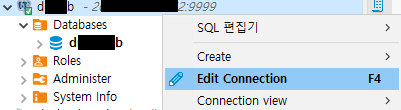 데이터베이스 우클릭 후 Edit Connection을 선택합니다.