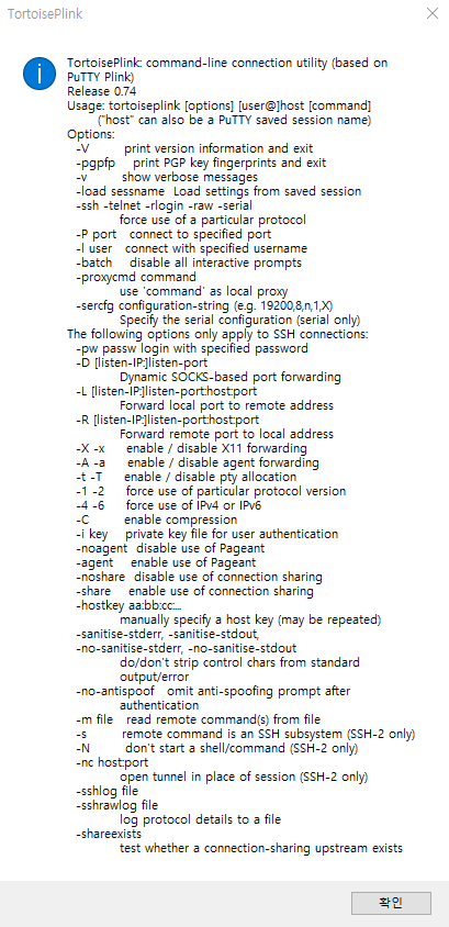 ssh 접속 시도할떄 사용하는 TortoisePlink.exe 파일 버전을 확인해봤다.